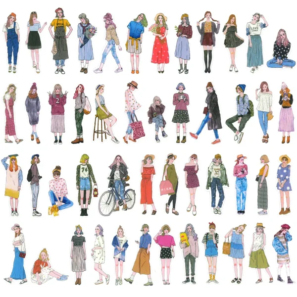 Wrapables Fashion Women People Vinyl Stickers for Scrapbooking, Journaling, Water Bottles