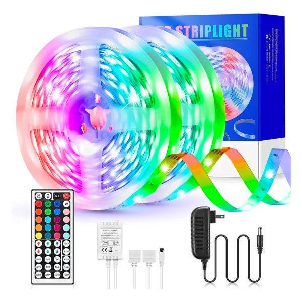 带遥控智能LED彩虹灯条软灯带10米 2盘装 RGB Smart LED Indoor Strip Light 40W Outlet Countdown Package