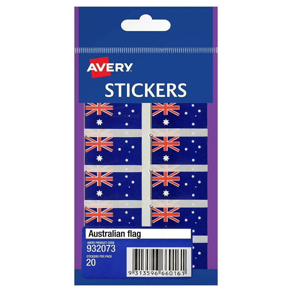 Avery 932073 Multi-Purpose Stickers Australian Flag 19 X 36Mm Pack 20