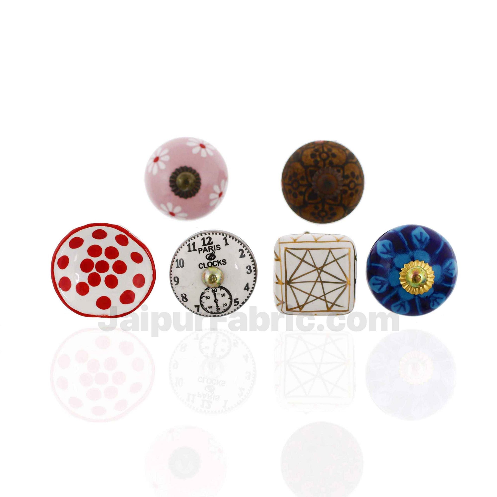 MultiColor Set of 6 Pcs Fabricated Knobs for Doors and Cabinets with Brass Blue Pottery Deals Cheap Online
