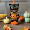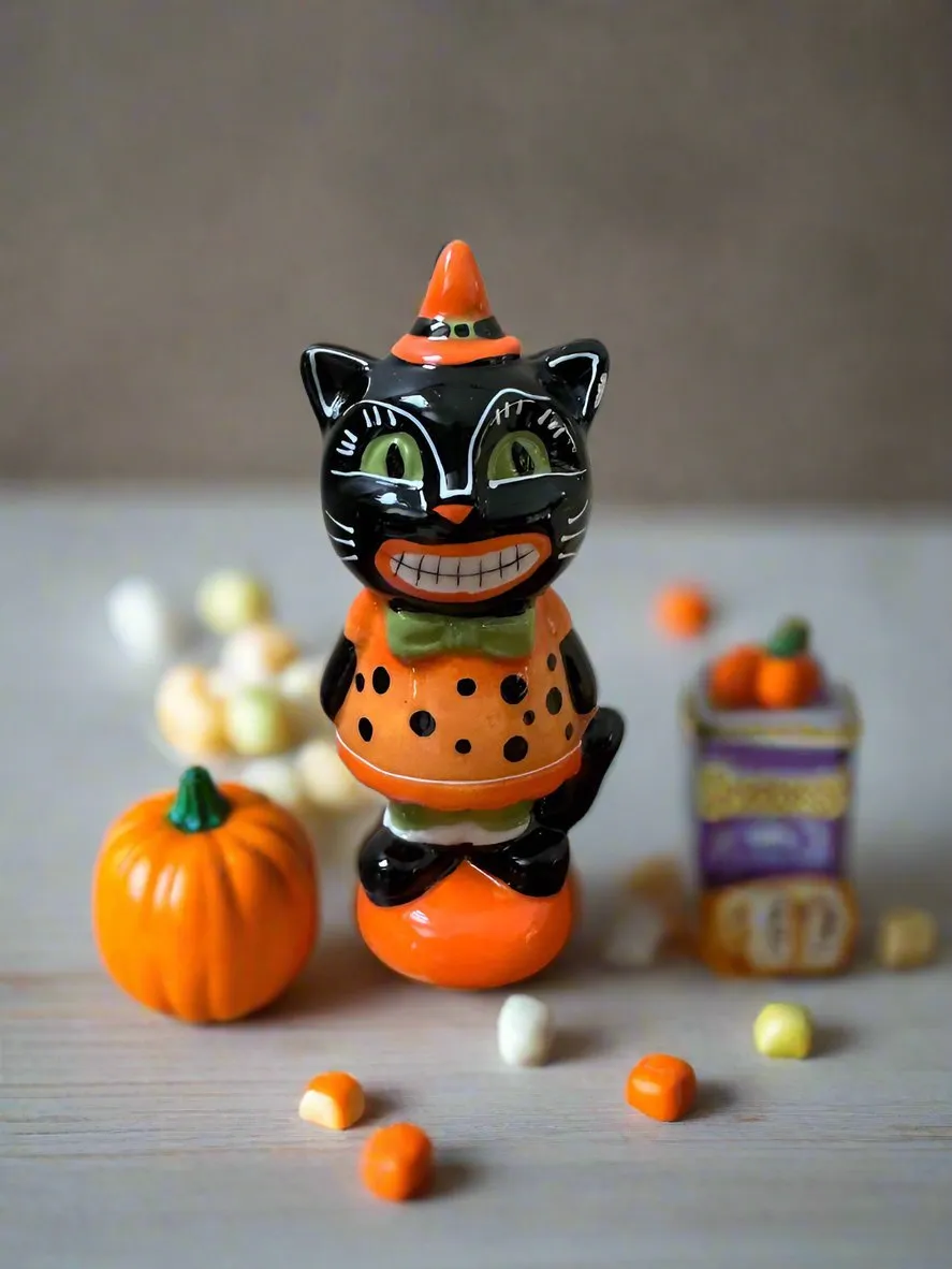 This is a whimsical retro looking cat.made from dolomite, with dimensions of