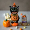 This is a whimsical retro looking cat.made from dolomite, with dimensions of