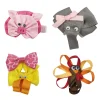 - Available in various colors and designs. Set comes with 4 ribbon hair clips.